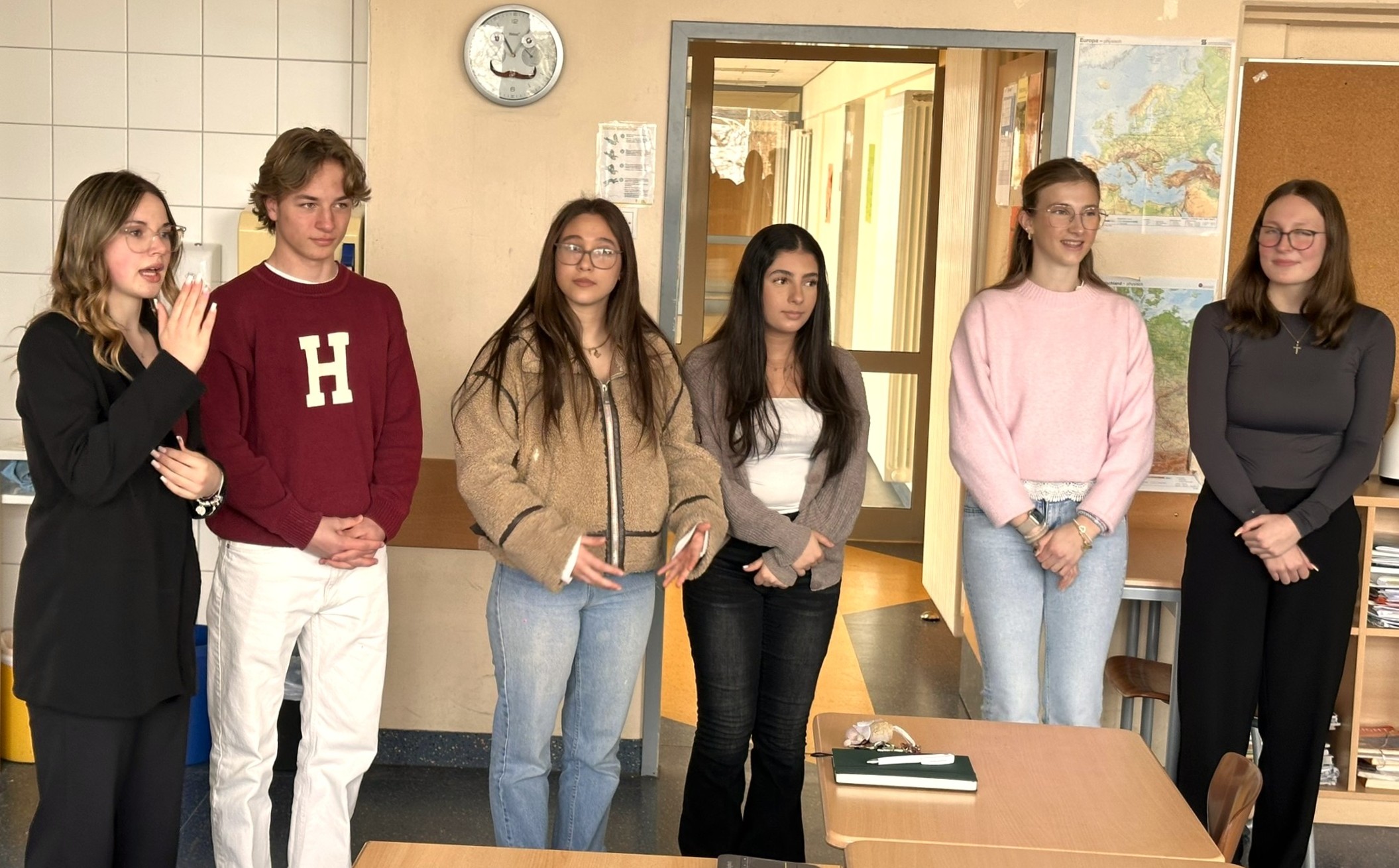Die Klasse 6e, betreut von Lehrerin Anke Neumann, ließ sich von der närrischen Energie mitreißen und hatte sichtlich großen Spaß. Dazu gab es noch zahlreiche Geschenke, sodass der Besuch nicht nur laut und fröhlich, sondern auch richtig großzügig war. Ein jecker Moment, der der 6e sicher noch lange in Erinnerung bleiben wird.